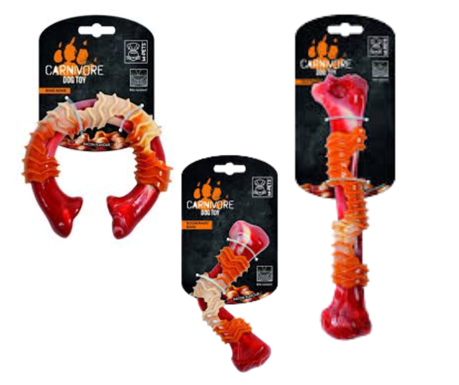 Na samym szczycie naszego zestawienia najlepszych zabawek dla psów znajduje się propozycja, dla psiaków o prawdziwie silnych szczękach z ogromną potrzebą gryzienia. Gryzaki dla psa M-PEST CARNIVORES wyróżniają się swoją wytrzymałością i mocnym materiałem, który z pewnością przetrwa nawet najbardziej intensywne momenty zabawy. Dodatkowo, dzięki swojemu wyjątkowemu zapachowi bekonu, ta zabawka przyciąga psa do zabawy i utrzymuje jego uwagę na dłużej. Występują w różnych kształtach i rozmiarach, co czyni je idealnie dopasowanymi do każdego czworonoga.