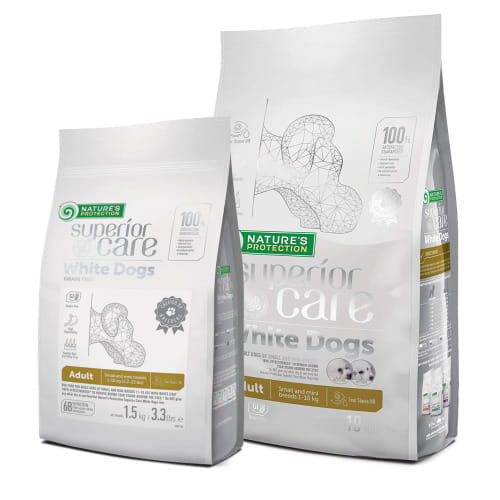Nature’s Protection Superior Care White Dogs Adult Small and Mini Breeds Lamb to pełnoporcjowa sucha karma dla białych psów dorosłych (od 10 miesiąca życia), ras małych i mini (masa ciała dorosłego psa od 1 do 10kg), z jagnięciną.