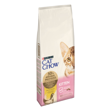 Karma Cat Chow® Kitten zapewnia pełnoporcjowe i zbilansowane żywienie kociąt od 6 tygodnia do 1 roku życia. Formuła karmy została wzbogacona o naturalnie obecny w mleku matki DHA (kwasOmega-3 dokozaheksaenowy), który wspiera prawidłowy rozwój mózgu i wzroku Twojego kocięcia, zapewniając mu doskonały start w dorosłe życie.