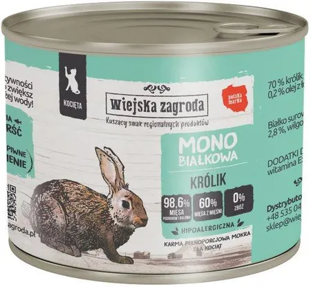 Wiejska Zagroda Karma mokra dla kota Monoproteinowa Królik (kociak) 200g